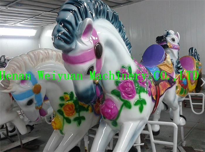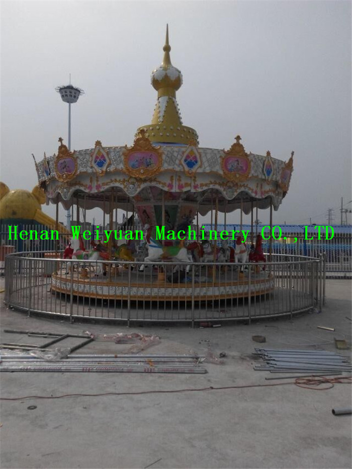 Carousel is a classic kiddie ride, also called roundabout, merry go round, typically considered as the reference points for children in all parks.When the equipment starts the turntable of it rotates gradually,and the horses that connected with the turntable will go up and down along the turntable.