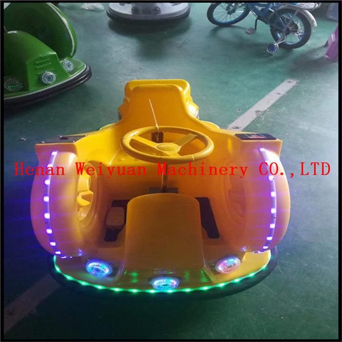 Ufo Kids bumper cars has high-strength fiberglass shell with UFO design, a wide variety of bright color, Red, Yellow, Green, Blue, Orange etc, over 50 groups colorful LED lights around the car, and equipped with a high -strength rubber bumper strips end of the edge. There are two small spanners on the seats sides to control the UFO bumper car, passengers operate the spanner to control the inflatable bumper cars go straight, go back also go turns, very easy. Passengers also can control it to bumper others, interesting and exciting.