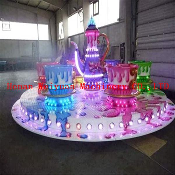 Coffee cup rides also named teacup rides. Rotating coffee cup is the latest developed amusement equipment, while chassis rotating in one direction,the coffee cup will rotate in the opposite direction inside, visitors will have the feel of weight loss and dizzy spin, while coffee cup is also moving fast. It is very interesting and stimulating.