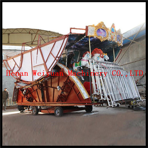 16 seats Kids Amusement Trailer Mounted Carousel