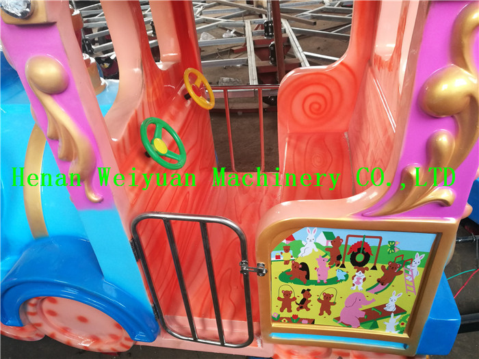 The track train is one of the popular small amusement equipments on the market. According to the shape of the small train, it can be divided into a bearded train, a hippocampus train, a marine train, an elephant train, a harmonious train and so on.