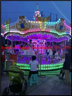 Carousel ride is a classic amusement ride including large, rotating platform with horse-shaped seats for people to ride or amusement, also called musical merry go round. Carousel ride is suit for both children and adults to play in amusement park, playground, shopping center and family entertainment centers. Movement of going up and down with festive music bring players a lot excitement. Carousel ride is usually equipped 3/6/12/24 or more seats.